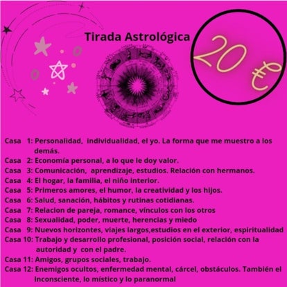 Tirada de las 12 casas astrológicas . Se envía fotografía de la tirada y audio o nota explicativa.